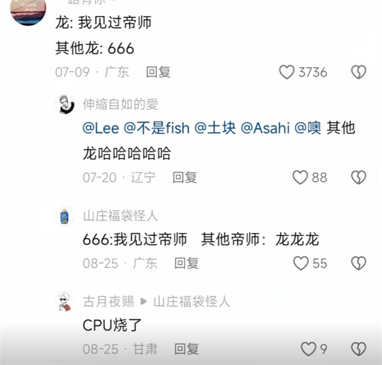 帝师以吹牛为直播特色,我见过龙这种言论明显违背常理和常识,是一种极度夸张、虚构的表达。所以该梗常被用于指代那些明显不真实、荒诞不经的吹嘘或虚构的经历。